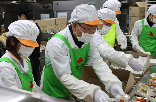 경기북부 사랑의열매(회장 이순선)는 30일 오전 10시 40분 덕양노인종합복지관에서 2019년 고양시 설명절 지원사업 전달식과 어르신 특식 지원 나눔행사를 가졌다. 설명절 행사에는 배병복 경기사랑의열매 부회장(원마운트 회장), 박광재 경기북부 사랑의열매 고액기부자(유익E&C 대표), 이상헌 고양시기업경제인연합회 회장((주)코스모전기 회장), 김종성 고양시청 노인복지과 과장, 김경희 경기북부 사랑의열매 본부장, 김정훈 고양시덕양노인종합복지관 관장 등이 참석했으며 설명절 지원금 전달식과 함께 어르신 1천 여 명에게 특식과 다과를 배식했다. 특히 이번 나눔에는 고양시기업경제인엽합회 회원기업 10여개소가 참석하면서 고양시 관내 저소득층을 위한 뜨거운 관심을 보였다.