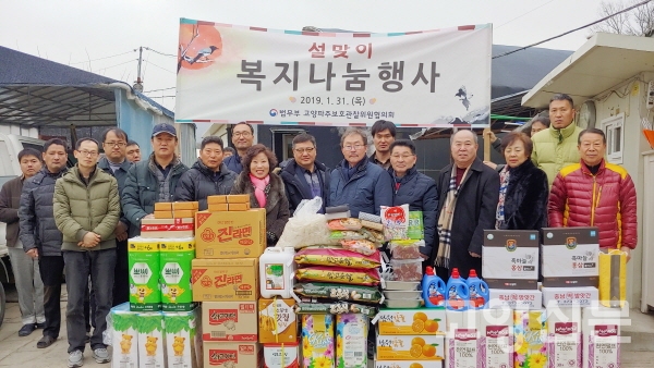 법무부 고양준법지원센터(소장 최종철)와 법사랑 고양지역연합회 보호관찰위원협의회(회장 이근종) 회원들이 설명절을 앞둔 지난 31일 관내 무의탁 출소자 시설인 ‘금성의 집’을 방문했다. 회원들은 쌀, 라면, 생필품과 소불고기, 떡, 곶감, 건강식품, 과일, 된장과 고추장 등 총 200만원 상당의 식료품을 전달하고 떡만두국을 끓여 함께 점심을 먹는 시간을 마련했다.