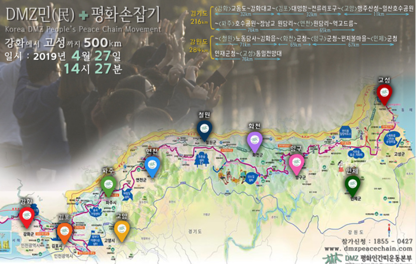 [고양신문] “강화도에서 고성 통일전망대까지는 걸어서 500㎞입니다. 50만 명의 시민들이 1m 간격으로 휴전선 앞에서 손을 잡고 인간띠를 만든다면 세계인들이 어떤 반응을 보일까요. 우리들의 통일염원을 전 세계에 보여주고 싶습니다.”