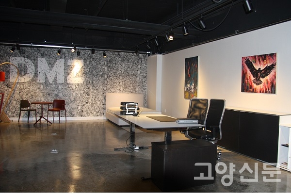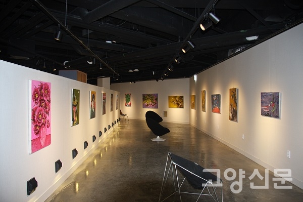 날카로운 발톱을 드러내며 날고 있는 독수리, 해골 사이에서 꽃을 피운 백일홍, 지뢰를 밟아 다리가 잘린 고라니, 철조망에 걸려 죽은 기러기 등 ‘DMZ 생태이야기’라는 주제로 전시되고 있는 그의 작품들은 무척 강렬하다. 원색이 더해져 야생의 힘과 긴장감이 넘치고 강력한 메시지를 전한다. 전시장을 찾은 관객들은 “그림들이 거친 듯 하면서도 특별하다”면서 “전시된 가구들과도 잘 어울린다”고 말했다.