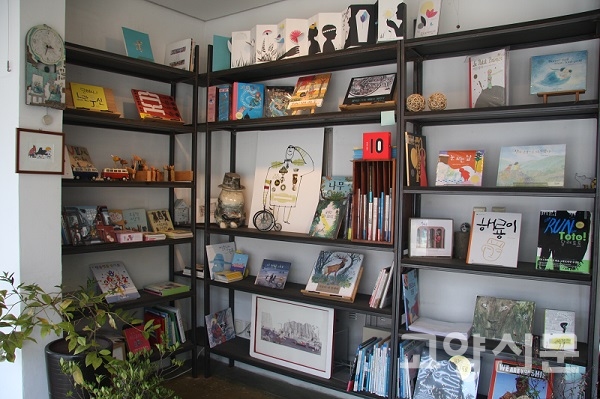 넓은 창으로 따스한 햇살이 비치는 1층에 들어서면 아름다운 그림책들 사이로 노란색 표지의 『우리 그림책 작가를 만나다』라는 책이 눈에 띈다. 이곳의 주인장 정병규씨가 쓴 책이다. 우리나라 1세대와 2세대(50~80대) 그림책 작가들을 만나 이야기를 나누고 글을 썼다. 3년 동안 보리출판사의 ‘개똥이네 집’에 연재한 것을 묶어 책으로 냈다. 현재 3세대(30~40대) 작가들에 관한 책을 준비 중이다.