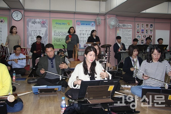 [고양신문] 홀트학교 풍물실에서 흥겨운 음악소리가 흘러나온다. 19일, 경기교사관현악단(단장 김성한) 단원 20여 명이 모여 합주 연습을 하는 현장이다. 부지휘자 김영절의 지휘와 안내에 따라 단원들이 각각의 파트를 연습하고 합주한다. 규모가 큰 정식 공연 때는 안산시립국악단의 임상규 상임지휘자가 지휘를 맡는다.