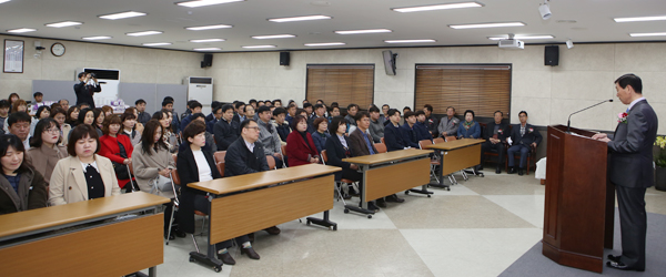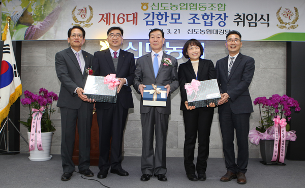 소박해서 더 특별한 신도농협 조합장 취임식이 삼송동 본점 3층 강당에서 있었다. 21일 이른 아침 7시 삼송동 신도농협 본점은 분주했다. 소박하고 간소한 취임식 준비로 직원들이 하나 둘 잰발걸음으로 움직였다. 7시 30분 취임식이 시작됐다. 신도농협 이사와 감사, 임직원 등 120여명이 참석한 가운데 지난 4년의 발자취를 영상으로 보고 취임식과 함께 감사패 전달과 기념사진 촬영이 있었다.