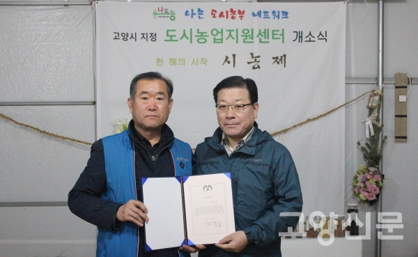 [고양신문] 도시농업 전문가모임인 ‘나는 도시농부 네트워크(대표 강윤원, 이하 나도농)’가 23일 일산서구 구산동 소풍원 농장에서 고양시 도시농업지원센터 지정을 자축하는 개소식을 열었다. 한 해 농사를 시작하는 시농제(始農祭)를 겸해 열린 이날 행사에는 고양시농업기술센터 소재식 도시농업과장과 정인철 팀장을 비롯해 전우택 고양도시농업네트워트 공동대표, 김영호 일산도시농업지원센터 대표, 강덕자 고양시마스터가드너협회장 등 도시농업 관계자들이 대거 참석했다. 또한 문명순 더불어민주당 고양갑 지역위원장, 김덕심·문재호 시의원, 박종권 도시재생연구소장 등 다수의 내빈들이 자리를 함께 하며 센터 개소를 축하했다.