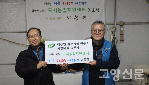강윤원 나도농 대표는 “나도농은 회원 전원이 도시농업관리사 자격증을 취득한 전문가모임으로서 녹지확보와 생태보전, 청소년체험과 노년 일자리확보 등 도시농업의 다원적 가치를 실현하는 모임”이라고 소개하며 “고양시 도시농업지원센터 지정을 계기로 다양한 프로그램을 확산하는 데 이바지할 것”이라며 포부를 밝혔다. 센터장을 맡게 된 박춘근 회원은 “하늘과 땅에 한해 농사의 시작을 고하는 시농제를 준비하며 푸짐한 음식을 마련했다”면서 “오늘 준비한 머슴떡을 꼭 드시고 모두들 도시농업의 머슴이 돼 보시라”고 인사를 전했다.