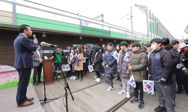 100주년 3.1절 행사인 ‘역사의 함성 100년 후, 평화와 통일의 외침!’이 지난달 23일 일산서구 고양일산역전시관에서 있었다. 김봉진 고양시 새마을회 회장을 비롯해 고은정 경기도의원, 이승엽 고양문화원장, 마준 고양청소년회의소 회장, 김규종 새마을지도자협의회장, 오춘희 고양시새마을부녀회장, 박종민 고양시 주민자치과 민간협력팀장 등 지역학생들과 내빈 300여명이 자리했다.
