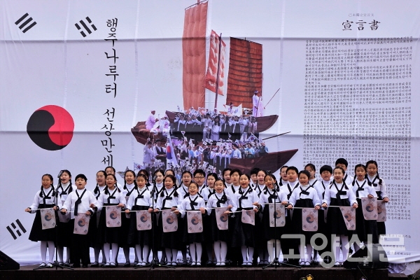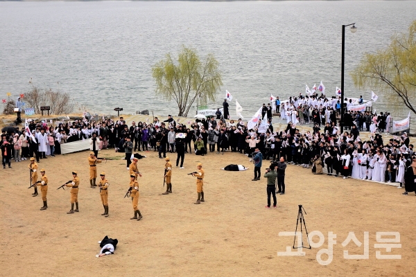 고양시와 고양시3·1혁명100주년추진위원회, 민족얼지킴이, 고양시민사회연대회의, 행주어촌계 후원으로 열린 이날 행사는 간간이 빗방울이 떨어지는 쌀쌀한 날씨에도 불구하고 많은 시민들이 참석한 가운데 시종 뜨거운 열기 속에 진행됐다. 특히 고양시 소재 10여 개 학교 550여 명의 청소년들이 자발적으로 참석해 고양의 자랑스런 독립운동 역사를 되새겼다.