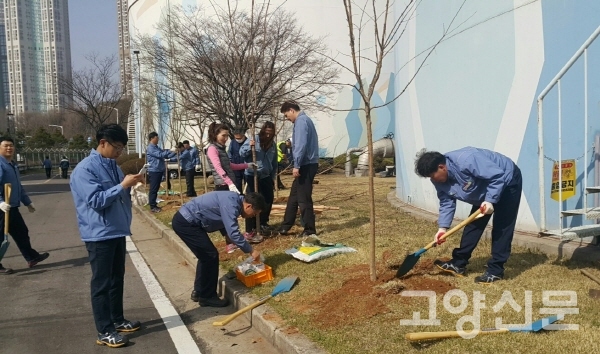 [고양신문] 고양시 일산동구 백석동에 자리한 한국동서발전(주) 일산화력본부(본부장 김종희)가 지난 5일, 제74회 식목일을 맞아 사업소 내 녹지대에 ‘미세먼지 정화나무 식재행사’를 진행했다.