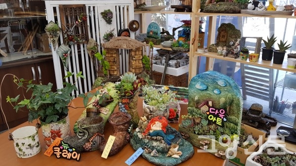 ‘호수공원 공예품 전시판매장’에 들어서면 고양시 장인들의 전통공예품과 함께 안 작가의 솜씨로 탄생한 앙증스러운 다육아트와 특색 있는 토탈공예가 방문객들을 반긴다.