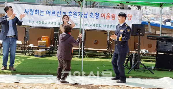 주지 보산스님은 행사 내내 앞치마를 두른 채 음식을 나르고 잔치의 흥을 돋우기 위해 무대에서 구수한 트로트를 불렀다. 권위를 내려놓고 지역주민들과 어우러진 종교인의 모습이 엿보였다.