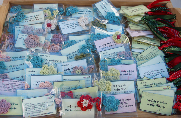 고양시대화노인종합복지관(관장 최윤정)은 23일 세계 책의 날을 맞이해 지역사회를 위해 작은 이벤트를 준비했다. 뜨개질을 매개로 봉사활동을 하는 ‘마실봉사단’과 도서관 관리와 문학책으로 도서관을 꾸며주는 ‘책사랑봉사단’이 연합해 책갈피를 제작했다.