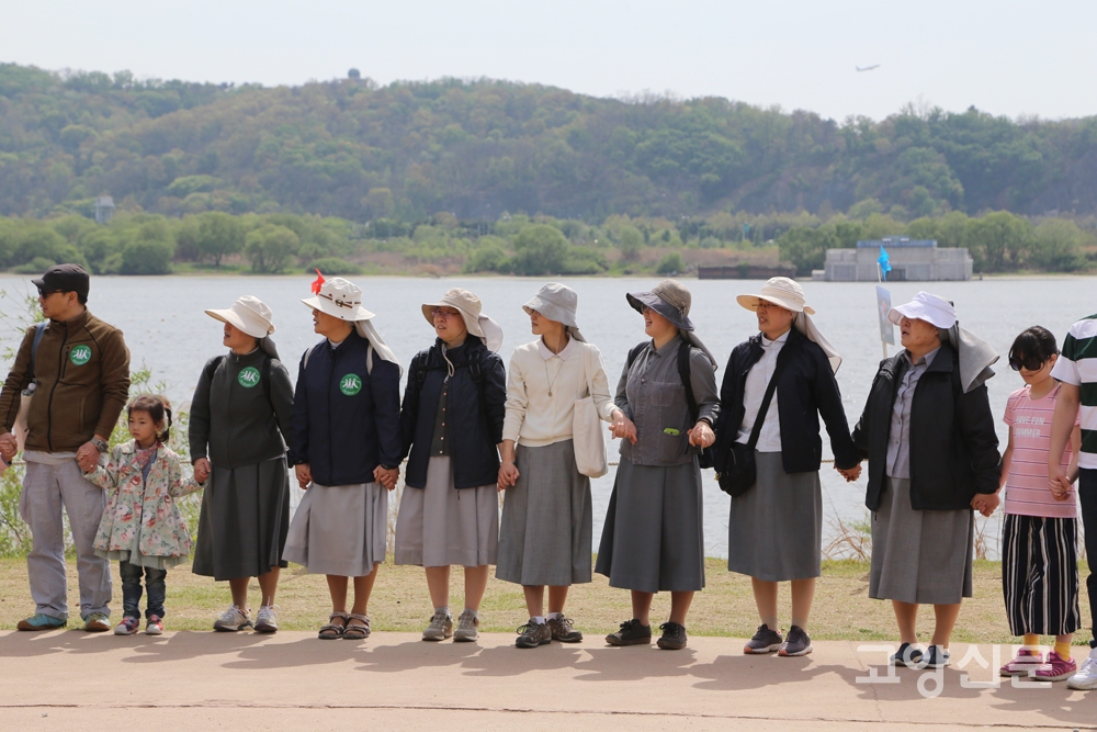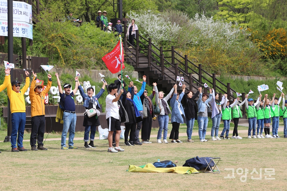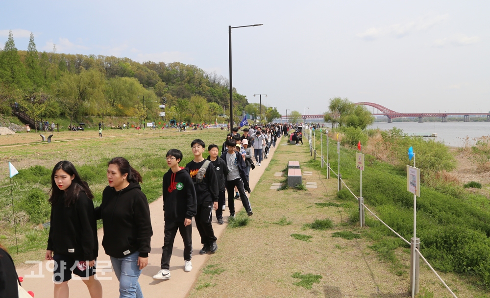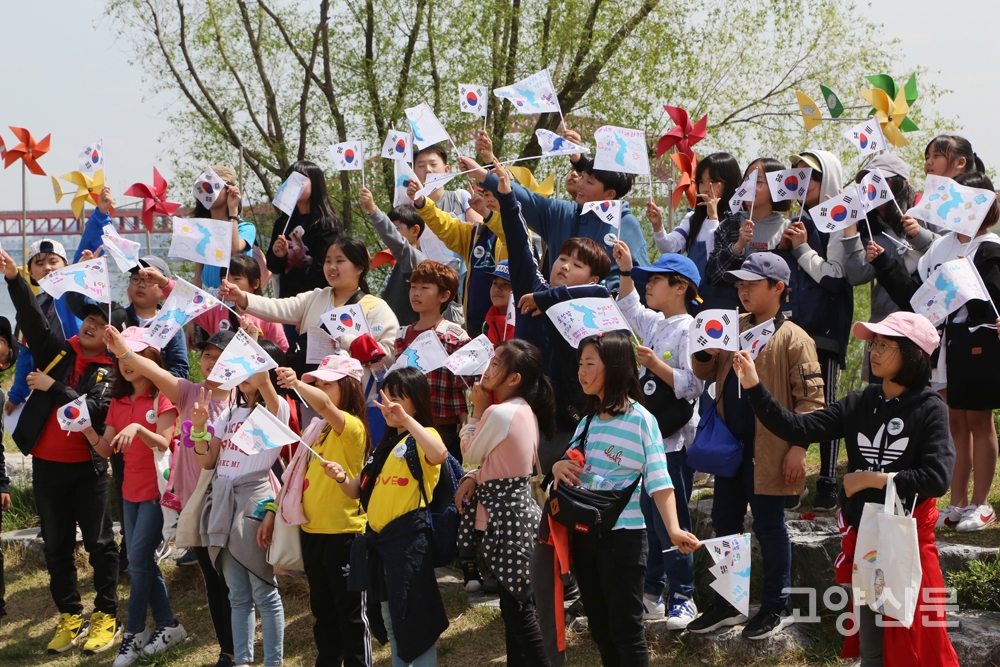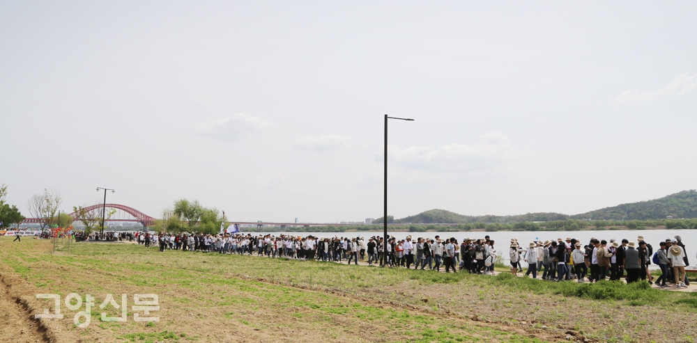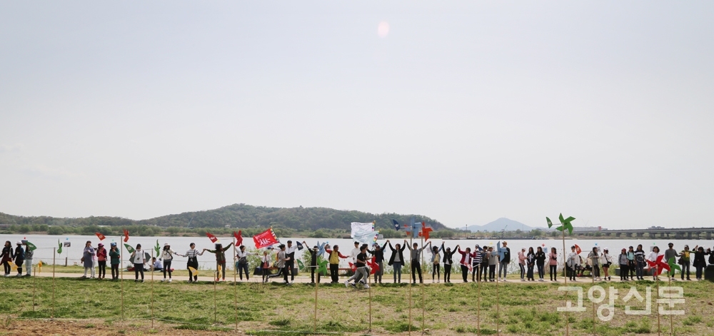 [고양신문] 평화누리길 500㎞를 시민과 학생, 종교계가 함께 손을 잡고 평화를 기원하는 행사가 판문점 선언 1주년을 맞아 접경지역 곳곳에서 진행됐다. 고양시에서는 약 5000명의 시민들이 행주산성 인근 한강변, 일산호수공원, 고양종합체육관을 중심으로 모여 한반도 평화에 대한 염원을 온몸으로 표현했다.