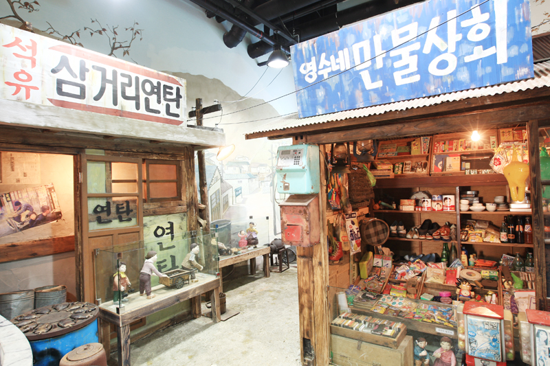 둥둥 북을 치며 팔던 동동구루무에서 70년대 소주병과 고무신, 마중물 한바가지 부어 물 길어올리던 펌프까지. 부모세대는 추억과 향수에 젖어들고, 자녀세대는 마냥 신기한 공간이다. 연탄광, 만화책방, 전파사 등 1950~60년대 골목 풍경이 그대로 재현돼 있다. 한바퀴 돌다보면 시간여행자가 된 착각에 빠져든다.