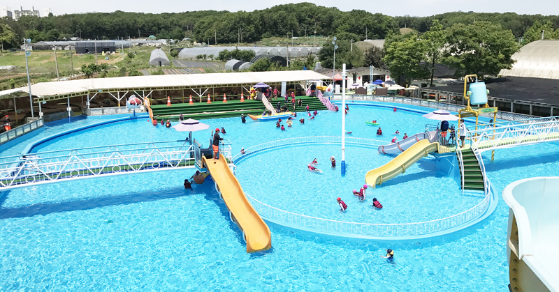 더운 여름엔 수영장이 최고! 아이들은 물놀이 하고, 엄마 아빠는 평상에서 낮잠을 즐길 수 있는 곳. 집에서 장만해온 음식을 반입할 수 있어 물놀이하다 지치면 삼겹살 구워먹고 또 물놀이하고, 추워지면 보글보글 라면 끓여먹는 재미가 있는 취사가능 수영장이다. 8개의 슬라이드에 유수풀까지 갖춰져 물놀이가 더욱 신나고, 안전요원이 지켜주니까 든든하기까지 하다. 수영장 물은 상수도를 사용하고 잔류염소 기준에 맞춰 수질을 항상 깨끗하게 유지한다.