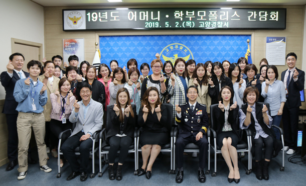 고양경찰서는 지난 5월 2일 경찰서 2층 꽃우물방에서 2019년도 ‘어머니폴리스·학부모폴리스 합동 간담회’ 행사를 개최했다<사진>. 이날 합동 간담회에는 강신걸 고양경찰서장을 비롯해 어머니폴리스 연합단과 학부모폴리스 연합단 등 44명이 참석했다.