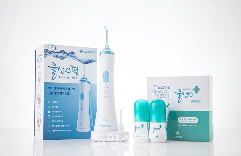 [고양신문] 바이오기술벤처 기업 닥스메디(일산서구 주엽동)가 오랜 연구개발 끝에 신개념 구강관리용품 쿨센스 시스템을 출시해 소비자의 이목을 끌고 있다. 쿨센스 시스템은 수압을 활용해 구강을 세정하는 ‘쿨센스픽’에 기존의 가글액 제품과는 달리 인체에 무해한 천연재료를 농축시킨 가글액 ‘쿨센스플러스’를 더해 구강을 관리하는 시스템이다.
