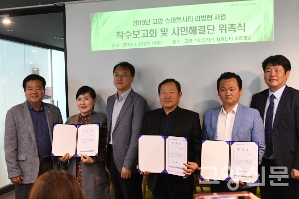 [고양신문] 시민들이 겪고 있는 생활문제를 스마트기술을 통해 해결한다. 스마트시티 리빙랩 사업의 성공적인 추진을 위한 착수보고회 및 시민해결단 위촉식이 지난 29일 정발산동에 위치한 고양스마트시티 지원센터에서 열렸다. 이날 보고회에는 화정2동·풍산동·대화동 주민자치위원들과 시의회 건설교통위 의원, 시 관계부서, 고양지식정보산업진흥원, 건설기술연구원 스마트시티 연구원 및 컨소시엄 기업 등이 참석했다.