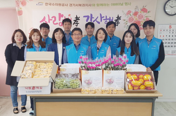 고양시문촌9종합사회복지관(관장 김신실) 주최로 ‘사랑해孝 감사해孝’가 지난 5월 7·8일 양일간 능곡센터와 주엽동 문촌9복지관에서 진행됐다. 능곡센터는 한국수자원공사 경기서북권지사(지사장 조용성)에서 생필품 선물셋트를 준비해 능곡·행주동 저소득 가정 26곳에 전달했다. 조용성 지사장과 임직원들은 “우리 부모님께 효도하는 마음으로 가정방문을 했습니다. 오늘만큼은 어르신들 마음에 정과 행복이 가득하시기를 기원합니다” 라고 소감을 밝혔다.