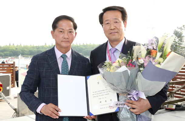 고양축협 유완식 조합장이 지난 5월 12일(일) 진행된 2019 고양국제꽃박람회 시상식에서 ‘대통령상’을 수상했다. 이번 상은 행정자치부장관이 주관하는 시상으로 2019년 고양국제꽃박람회에서 국내·외 참가업체 중 가장 우수한 성적을 거둔 1개 업체를 선정해 수상하는 상으로 고양축협이 최고상인 대통령상을 수상하게 되었다. 고양축협은 이번 꽃박람회에서 농협홍보 주관 조합으로 부스연출 부문과 품격 높은 전시, 운영으로 그 공을 인정받았다.