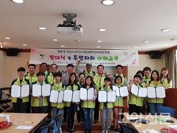 [고양신문] 11일 행주동 행정복지센터 2층 회의실에서 12명의 어린이 주민자치위원과 신재홍 행주동장, 이흥윤 주민자치위원장, 행주동 공무원 등 총 20여 명이 참석한 가운데 '행주동 제2기 어린이 명예주민자치위원' 위촉장 수여와, 1기 어린이 주민자치위원회 운영 성과 동영상 감상, 주민자치 이해를 위한 교육 등이 실시됐다.