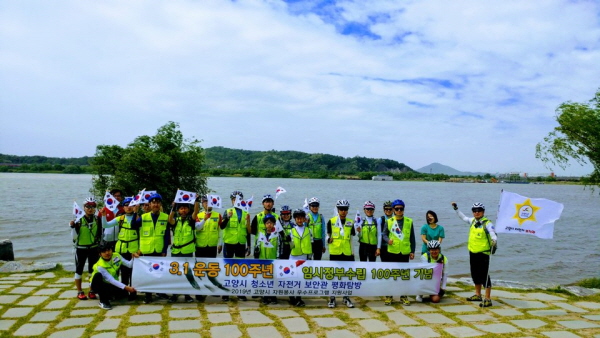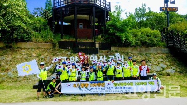 [고양신문] 고양시 청소년 자전거 보안관 회원들이 3·1운동과 임시정부수립 100주년을 기념해 18일 ‘평화누리길 역사체험활동’을 진행했다.