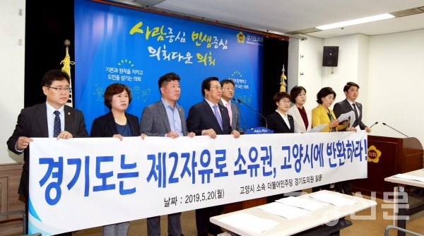 [고양신문] 경기도가 소유하고 있는 제2자유로 고양시 구간에 대한 토지소유권 반환 요구가 높아지고 있는 가운데 도의회에서도 이에 동참하는 기자회견이 열렸다.