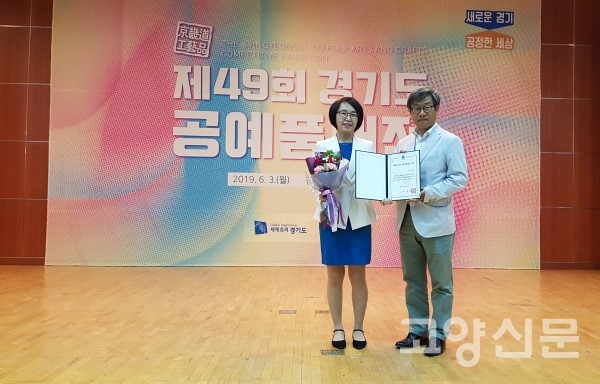 [고양신문] 고양시 공예사업 협동조합(조합장 박성규, 사업상무 이호강)은 11명이 제49회 경기도 공예품대전에 입상했다. 지난 3일 수상자들은 고양시 소상공인 지원과 윤건상 과장, 지역경제과 유은숙 팀장과 함께 수원에서 열린 시상식에 참석했다.