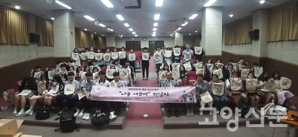 600여 개 에코백을 전달받은 다함 봉사단 박승현 대표는 “아름다운 나눔활동에 동참해 준 고양일고 학생들에게 감사하다”면서 “방글라데시 청소년들에게 마음을 담아 잘 전달하겠다”고 말했다.