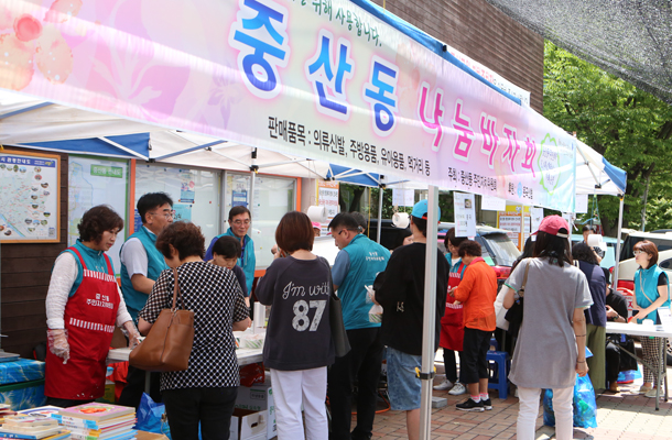 나눔을 통해 지역과 또다시 나눔을 실천하는 ‘중산동 나눔바자회’가 11일 오전 10시부터 일산동구 중산동행정복지센터(동장 남기준)에서 있었다. 중산동 주민자치위원회(위원장 안종율) 주최로 열린 바자회는 주민들이 기부한 물품과 먹거리 등을 판매해 기금을 마련했다.