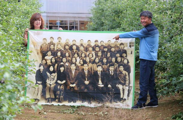 “마을 창고를 떠나 새 건물의 학교로 이사를 했어요. 그래도 다 갖춰진 건 아니었죠. 학생들이 손수레를 끌고 화정리 뱅골에 가서 향나무를 싣고 와 학교에 심었어요. 그때는 힘든 줄도 몰랐어요. 부모님과 동네 분들이 기증한 나무였죠. 한 그루에 하나씩 기증하신 분의 명패도 달아 놨어요. 지금도 그 향나무가 학교에 있습니다. 벌써 49년이 됐네요.”