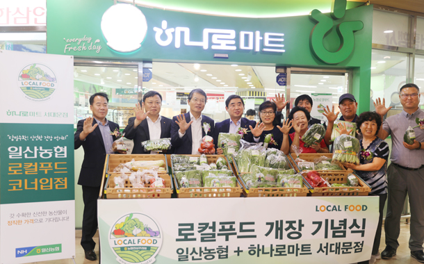일산농협(조합장 김진의)이 지난 27일 하나로마트 서대문점에서 김진의 전국로컬푸드협의회회장(일산농협 조합장), 김성광 농협하나로유통 대표이사, 김용식 농협경제지주 상무, 일산농협 조합원 등이 참석한 가운데 로컬푸드직매장 개장식<사진>을 가졌다.