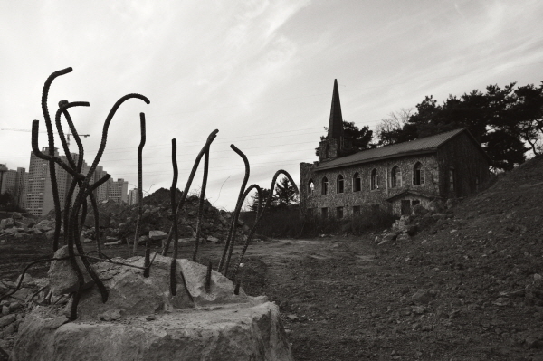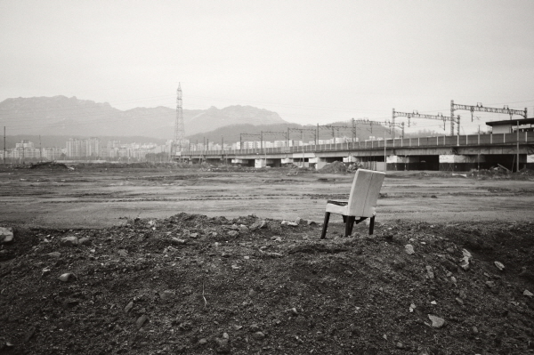 김 작가가 포착한 흑백 화면 속에는 허물어진 과거와 아직 모습을 드러내지 않은 미래 사이에서 표정을 잃은 지축동의 황량한 풍경들이 이어진다. 하지만 작품 하나하나를 천천히 응시하면 쓸쓸한 장면 틈새로 은근한 서정성이 감지되기도 한다. 폐허를 바라보는 김평기 작가의 시선에 따뜻한 체온이 묻어있기 때문이다. 사라지는 것들을 잊지 않으려는 간절함, 그리고 그 터 위에 다시금 새로운 생명의 이야기가 뿌리내리기를 기원하는 애틋함이 동시에 전달된다.