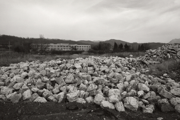 ▲ 분명 철근 박힌 콘크리트 덩어리가 뒤섞인 철거의 잔해일 뿐이다. 하지만 어딘지 둥글둥글 풍성한, 강가를 구르는 호박돌 무더기를 닮았다. 뒤편에 보이는 건물은 옛 지축초등학교다. 북한산의 우람한 산세가 시원하게 조망되던 운동장은 아이들만의 차지는 아니었다. 휴일엔 공 차는 어른들의 목소리가 드높았고, 이런 저런 마을행사가 열리기도 했었다.