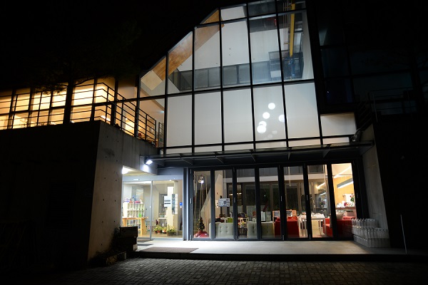 헤이리마을 8게이트에서 길을 따라 들어가면 오른쪽으로 단순한 듯 보이는 회색 건물이 나온다. 건물 전면과 후면이 커다란 유리창으로 꾸며져 시원스럽다. 1층 카페에 들어서면 천장이 3층까지 높고 여유롭게 트였다. 뒷쪽으로 아담한 야외 연회장도 보인다.