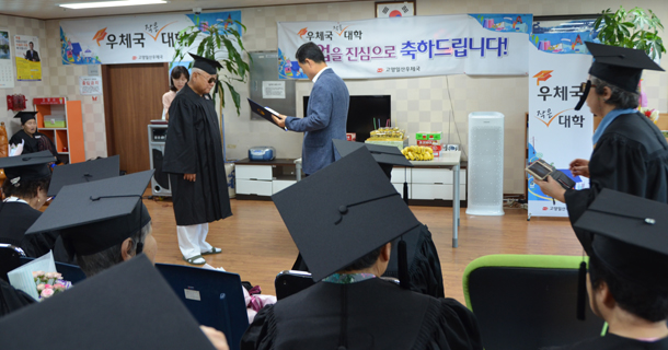 [고양신문] 고양일산우체국(국장 남철진)이 지난 8월 1일 일산동구 백석동 소재 흰돌마을 4단지 경로당에서 ‘이동우체국 작은대학’ 졸업식을 가졌다. 그동안 성실하게 열정적으로 참여하신 30여 명의 어르신들과 관계자, 내빈들이 참석했다.