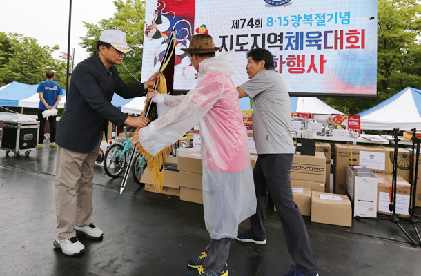 1945년 창립돼 1946년 첫 대회를 시작 한 '지도지역 체육대회 문화행사'가 광복절인 지난 15일 덕양구 행주동 충장공원에서 열렸다. 74회째인 이번 대회에는 정세창 지도체육회장을 비롯해 이재준 고양시장과 이윤승 고양시의회의장, 지역 국회의원, 시·도의원, 장순복 지도농협조합장, 참가지역 체육회장 등 내·외빈이 참석했다. 이날 체육대회는 능곡동·행신1동·행신2동·행신3동·행주동·화정1동·화정2동 주민들이 참여해 비가 오는 가운데서 박터트리기, 단체줄넘기 등의 다양한 경기와 장기자랑으로 주민화합의 경기를 가졌다. 오전 11시 개회식을 시작으로 경품추첨까지 오후 6시경까지 대회가 이어졌으며 지난해 우승팀 능곡동에게서 행신3동이 우승기를 가져갔다.