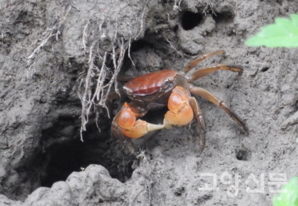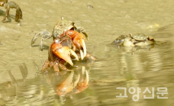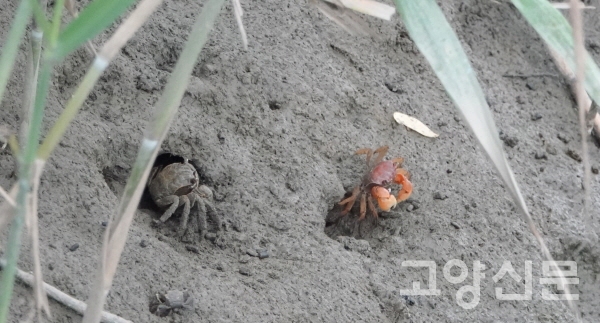 [고양신문] 장항습지와 대덕생태공원 갯골에 붉은발말똥게가 다수 서식하는 것이 확인됐다. (사)에코코리아는 “최근 장항습지와 대덕생태공원에서 생태 모니터링을 진행했는데, 다수의 갯골에서 각각 두세 마리의 붉은발말똥게가 발견됐다”며 반가운 소식을 전했다.