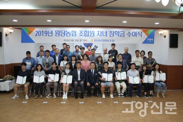 [고양신문] 원당농협(조합장 강효희)은 19일 본점 강당에서 조합원 자녀에게 장학금을 수여했다. 이날 강효희 조합장, 이정환 상임이사를 비롯해 조합원들과 자녀들이 참석한 자리에서 고등학생 7명에게 각각 30만원, 대학생 25명에게 각각 100만원씩 총 2710만원의 장학금을 지급했다.