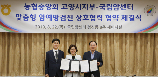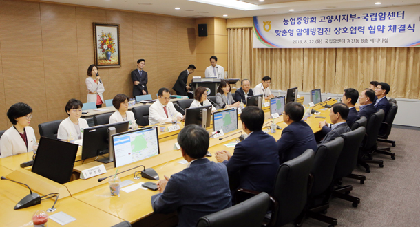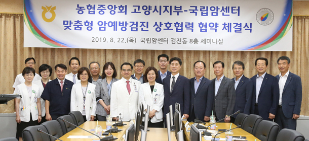 농협중앙회 고양시지부(지부장 김재득)와 고양시 지역농협이 8월 22일(목) 오전 10시 국립암센터 검진동 8층 세미나실에서 맞춤형 암예방검진 상호협력 협약 체결식 가졌다.