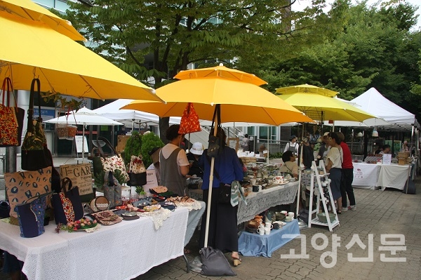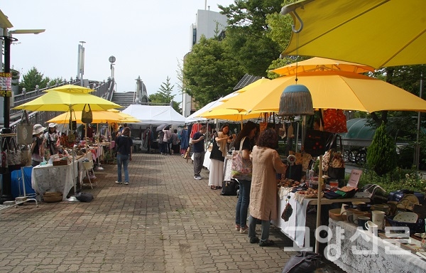 9월 2일, 대화도서관 앞에서 ‘예쁜 거, 맛있는 거, 재밌는 거’를 만날 수 있는 랄랄라 수다마켓이 열렸다. 벌써 7년째로 대화동 사랑방으로 통하는 전통찻집이자 밥 카페인 ‘수다스토리’의 박진숙 대표가 일산에서 가장 먼저 시작한 핸드메이드 플리마켓이다. 수공예 작가들의 활동을 돕기 위해 시작한 일이 이웃돕기, 작가들을 응원하고 동네 주민들이 만나는 정이 넘치는 마켓으로 발전했다. 민화 그림을 직접 그려 넣어 만들 수 있는 참 장식 만들기 체험 부스와, 강아지 턱받이처럼 사랑스러운 강아지 용품과 수제 간식을 준비한 펫숍 등 특색 있는 부스로 눈에 띄었다. 앙증맞은 가방, 사랑스러운 조각보, 멋스러운 원피스, 고급스러운 도자기 등 장인들의 정성이 담긴 작품뿐 아니라 유기농 먹거리도 살 수 있다. 설탕을 넣지 않아 건강한 수제잼, 수제청, 단호박식혜 등 음료와 베이커리류도 맛볼 수 있어 입이 즐겁다. 고양시와 파주시, 광주, 서울, 김포에서 35개 팀이 참여해 정겹고 발랄한 장터를 만들었다.
