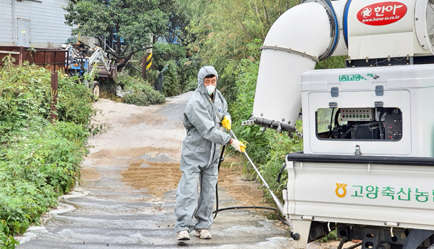 한편 고양시는 지난 17일부터 즉시 정부 재난단계 중 최고 수준인 ‘심각’을 발령했으며, 긴급 일제소독, 통제초소 설치와 10km 이내 농가 이동제한 등 선제적 조치에 나섰다. 또한 대화동과 원흥동에도 2개소의 거점소독시설을 설치해 2교대 방역을 실시하고 있다.
