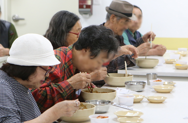 기다리던 어르신들은 "우리 먼저 달라"고 하시며 "아침도 안먹고 왔다"고 봉사단에게 재촉하기도 했다. 이날 준비한 짜장면은 180인분으로 징검다리봉사단원들이 복지관 직원들과 함께 나눔을 펼쳤다.