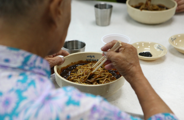 이수영 사랑의징검다리봉사단장은 “맛있는 짜장면을 준비했다. 지금 막 나온 맛있는 음식을 드리기 위해 봉사단원들의 노력이 고스란히 녹아있다. 맛있게 드시고 늘 건강하시길 바란다”라고 말했다.