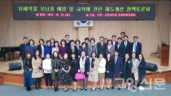[고양신문] 고양시의회 문화복지위원회(위원장 김효금)가 약물 오남용의 위험성과 예방대책 마련을 위한 토론의 장을 열었다. 22일 고양교육지원청 대강당에서 열린 ‘고양시 유해약물 오남용 예방 및 교육에 관한 제도개선 정책 수립을 위한 토론회’에는 이윤승 고양시의회 의장과 문복위 소속의원, 학계, 전문가, 관련부서 공무원, 학부모와 지역주민 등 100여 명이 참석해 발표 내용을 경청했다.