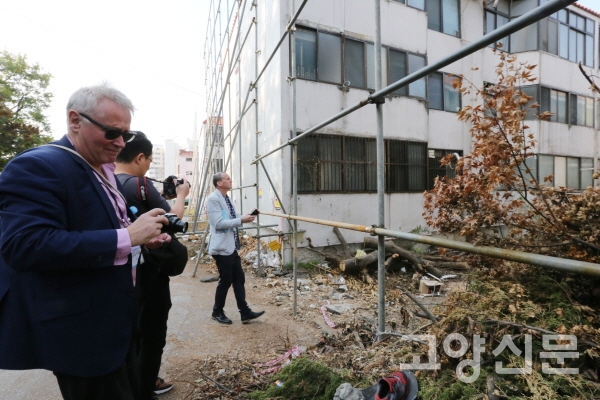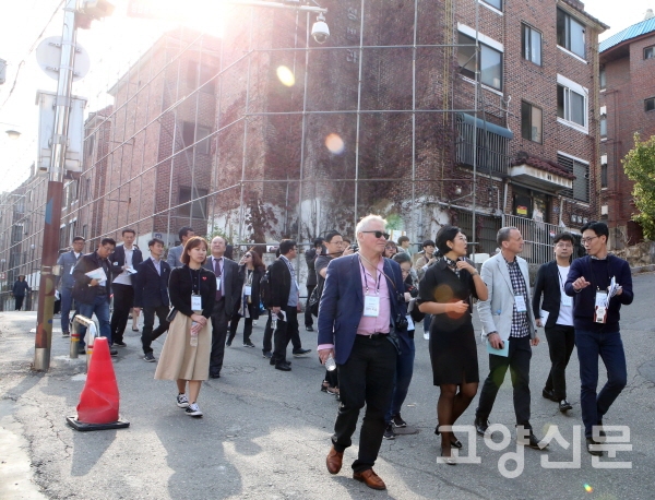 [고양신문] 외부인의 눈으로 본 고양시 도시재생 가능성은 무엇일까. 2019고양도시포럼을 하루 앞둔 23일 피터비숍 영국 런던대학교 교수, 마크 사우스콤 뉴질랜드 빅토리아대학교 교수를 비롯해 국내외 도시재생 전문가, 고양시 도시재생 관계자 등 30여명이 참여하는 고양도시재생 로컬투어 행사가 마련됐다. 고양시 도시재생 대상지를 외부자 시각에서 살펴본 뒤 사업 성공추진을 위한 조언을 얻기 위해 마련된 자리였다.