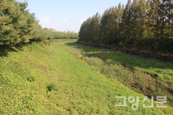 대화천은 이번 기획에 첫 등장하는 소하천이다. 하지만 소하천 치고는 웬만한 지방하천보다 크다. 길이는 5.5km에 달하고, 하천 폭도 상당하다. 그럼에도 불구하고 2012년에야 비로소 하천으로 등재됐으니, 고양의 78개 하천 중 가장 막내 격이다. 이유가 뭘까. 사실 대화천은 애초부터 하천이 아니었다. 1990년대 초반 일산신도시가 건설되던 당시, 신도시의 빗물을 한강으로 흘려보내려는 목적으로 만들어진 물길이 바로 지금의 대화천인 것. 그래서 최근까지도 고양시 지도에 대화천이라는 이름 대신 ‘서북측 개수로’라는 이름으로 표기돼야 했다.