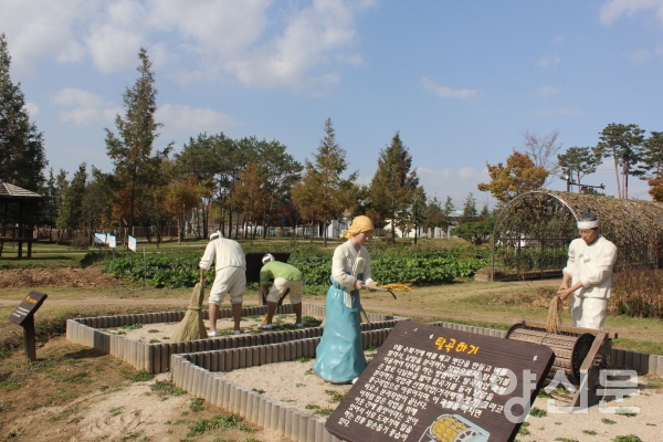 다리를 건너면 서북측 농경지대에 조성된 유일한 시민휴식공간인 대화농업체험공원이 나타난다. 텃밭과 원두막, 농사짓는 모습을 재현한 조형물과 산책로가 아기자기하게 정비돼 있다. 체육관과 농업체험공간을 잇는 작은 도보다리가 도·농 복합도시 고양시의 특성을 잘 보여주는 시설물처럼 느껴진다.