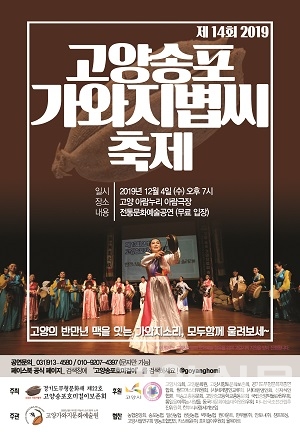[고양신문] 제14회 고양송포가와지볍씨축제가 12월 4일(수) 오후 7시 고양아람누리 아람극장에서 펼쳐진다. 경기도무형문화재 22호인 고양송포호미걸이 보존회가 주최하는 행사로, 고양의 농경문화를 대표하는 예술축제다.