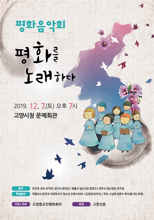 [고양신문] 고양종교인평화회의가 오는 12월 7일(토) 오후 7시 고양시청 문예회관에서 ‘평화음악회’를 개최한다. 이번 음악회는 개신교‧불교‧천주교‧원불교 등 다양한 종단들이 한자리에 모여 평화를 노래하는 특별한 행사다.