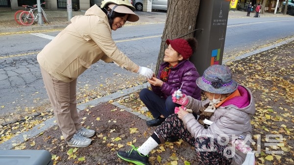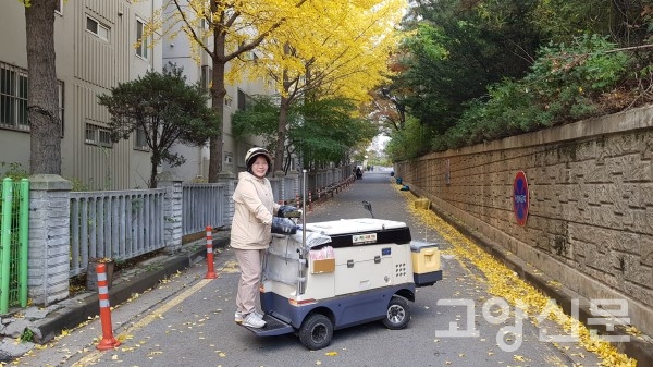 그는 야쿠르트 배달을 하면서 주변 독거 어르신들을 꼼꼼히 챙기고 있다. 요즘처럼 은행잎이 인도에 쌓이는 날에는 어르신들이 길을 가다가 빈 박스를 펼쳐서 나무 아래 쉬고 있는 모습을 많이 보게 된다.